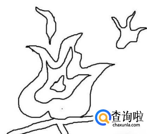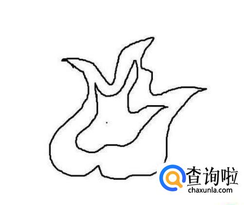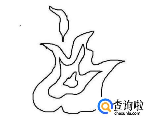 先画出火焰主体的轮廓,虽然火焰没有固定的形态,但是需要注意的是小火焰的形状是下大上小,根据这个条件我们可以画出根部和一些交叉。