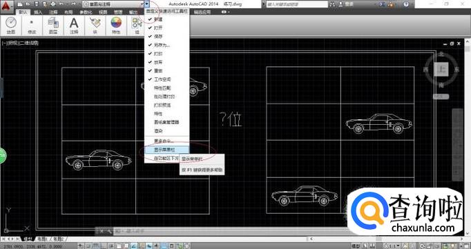 如图所示,点击自定义快速访问工具栏向下箭头。弹出下拉列表选项,选择"显示菜单栏"项。