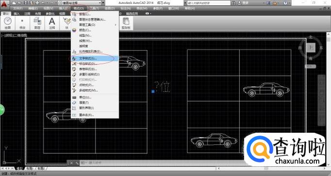 如图所示,弹出"格式"菜单选项。选择"文字样式..."项,下步将进行字体显示问号需改为正常字体的操作。