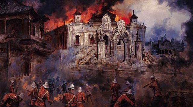 火烧圆明园是历史上最为恶劣的文化毁灭行动之一,也是世界文明史上罕见的暴行。园中文物被联军掠夺走约150万件(上至中国先秦时期的青铜礼器,下至唐、宋、元、明、清历代的名人书画和各种奇珍异宝),大火三日不灭,圆明园现仅存建筑遗址。