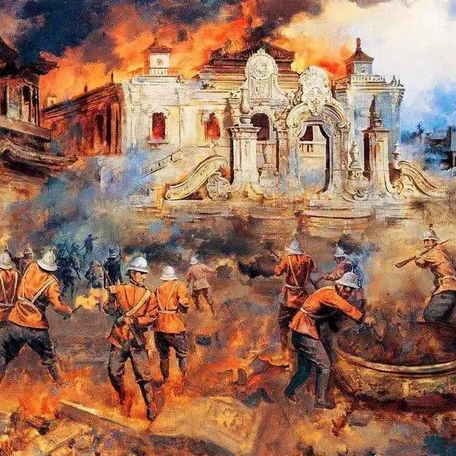 第二次鸦片战争中,英法联军入侵我国,在中国的土地上肆无忌惮的展开了一系列的强盗行径。1860年10月6日,英法联军进入北京城,闯入圆明园。圆明园是一座有着一百多年历史的皇家园林,这里不光有这精致而又宏伟的建筑,还有各种各样的珍宝文物。