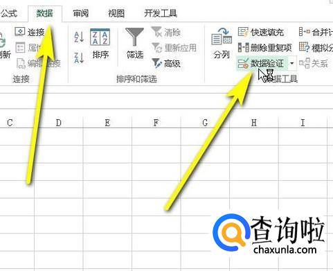 如图所示,点击“数据”选项卡。再点:数据验证