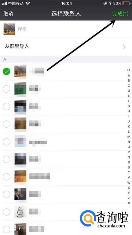 接着选择一个好友并点击完成,如下图所示。