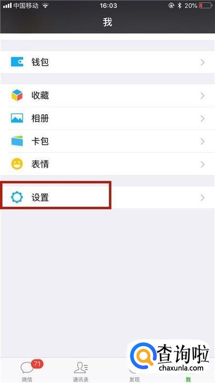 首先点击微信中的设置,如下图所示。