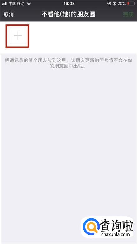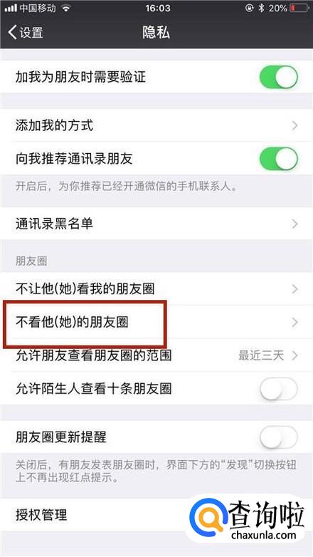 接着点击不看他(她)的朋友圈,如下图所示。