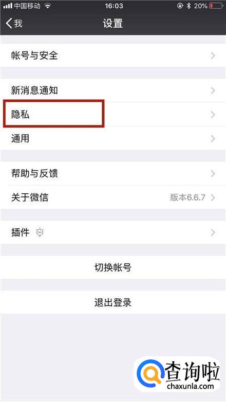 然后点击隐私,如下图所示。