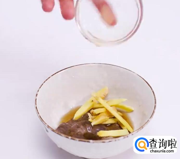 放入姜丝和料酒腌制10分钟。