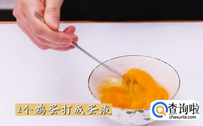 打2个鸡蛋后搅拌成蛋液。
