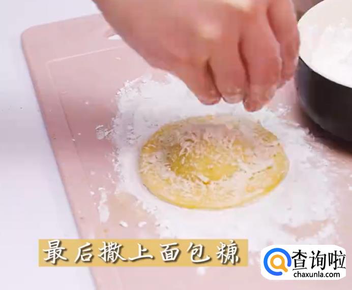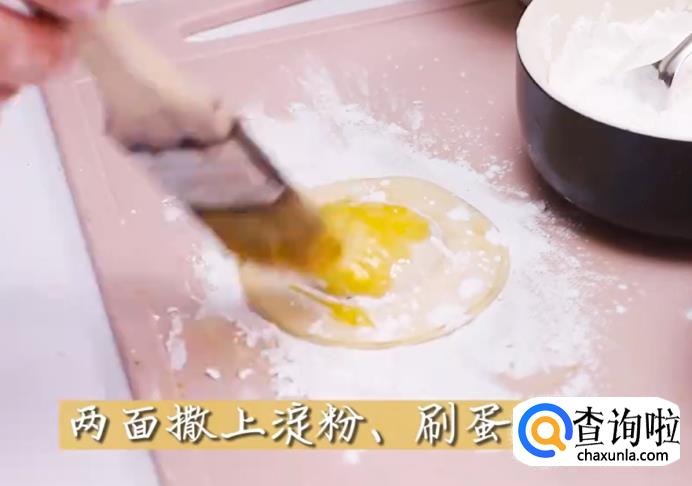 取出玻璃杯后,两个面撒上淀粉,再刷蛋液。