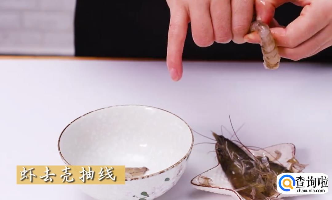 虾子去壳后挑出虾线。