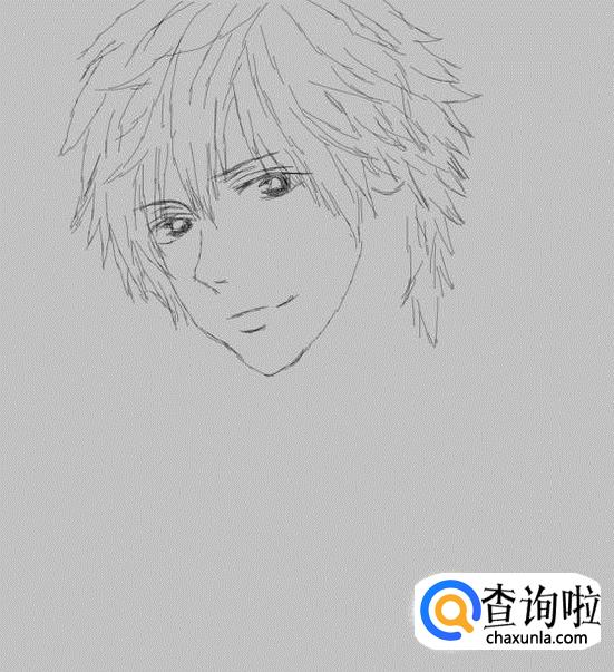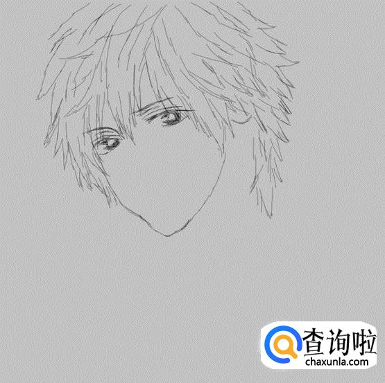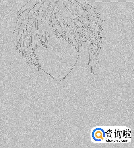 先画出动漫人物的头发造型,如图所示:
