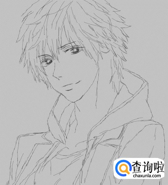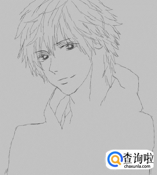 我们可以先从人物的头发画起,然后画出面部,之后画出身体轮廓。