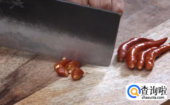 热锅起油,下干辣椒和鲜辣椒爆香。
