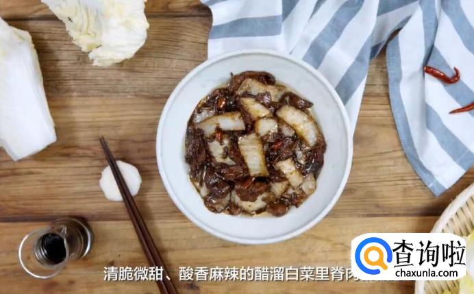 最后将准备好的酱汁调匀,倒入锅中,继续翻炒至白菜均匀裹上酱汁。清脆微甜、酸香麻辣的醋溜白菜里脊肉就做好了。