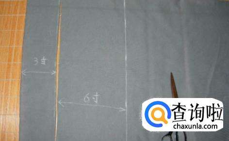 裤子缝合后,要装裤腰和脚口螺纹,按照自己需要的大小宽窄裁剪备用。此图是3寸的双层是裤腰,6寸的双层是裤脚。