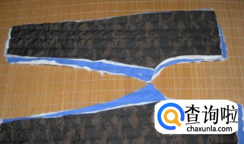 两条秋裤裁剪好的尺寸里外相对,中间夹上棉花。