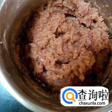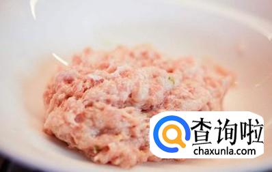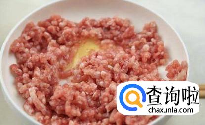 半个小时后将淀粉、鸡蛋放入腌制好的肉泥中,再搅拌均匀。