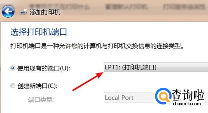 选择打印的接口,LPT1端口或USB端口,按自己接的选择。