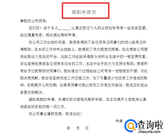 首先要写出书信辞职的内容,开门见山让人一看便知。