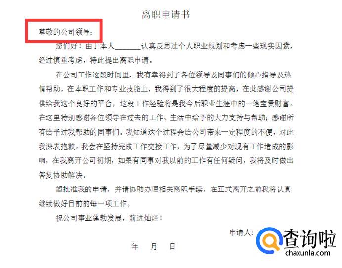 要求在标题下一行顶格处写出接受辞职信的单位组织或领导人的名称或姓名称呼,并在称呼后加冒号。