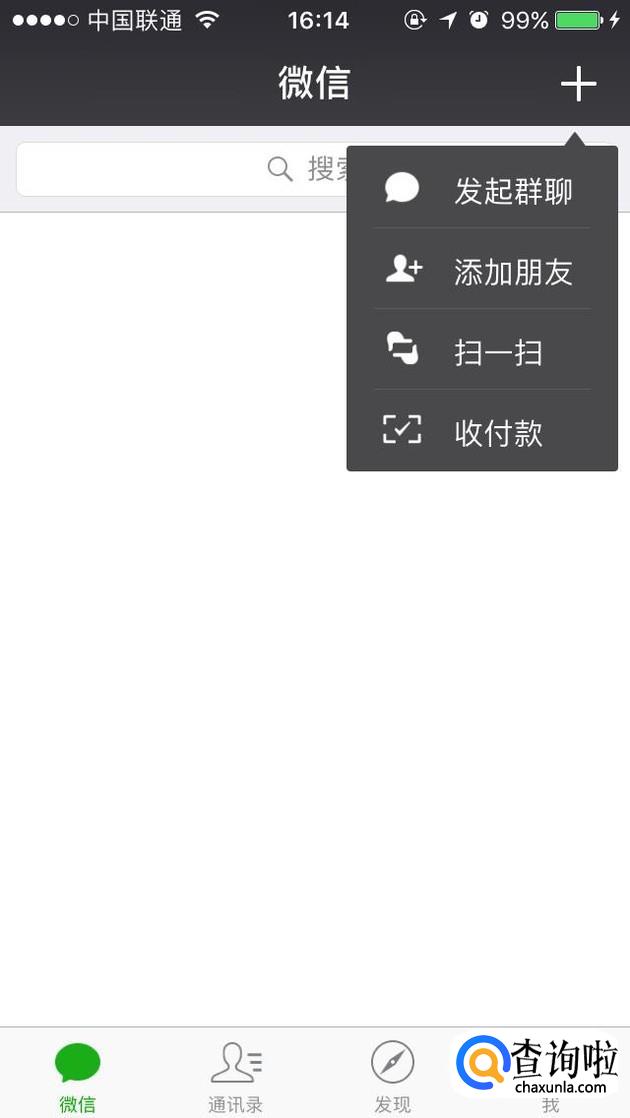 进入微信界面,在界面右上方选择“+”