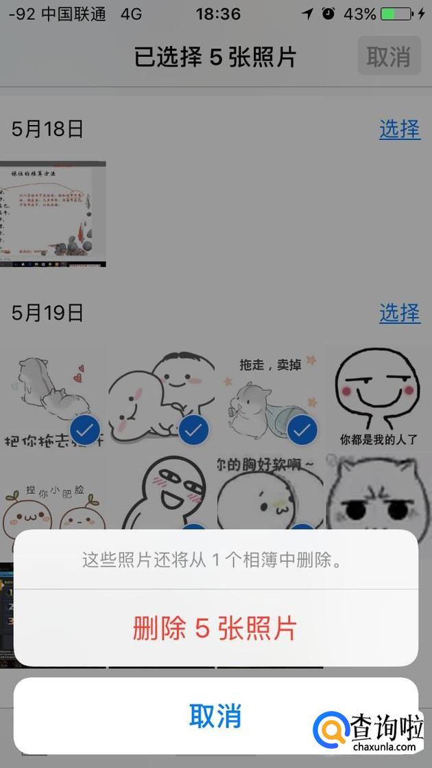 在相册首页现在自己想要删除的照片,可以批量删除大量照片,选择好后点击右下角的删除键即可删除照片。