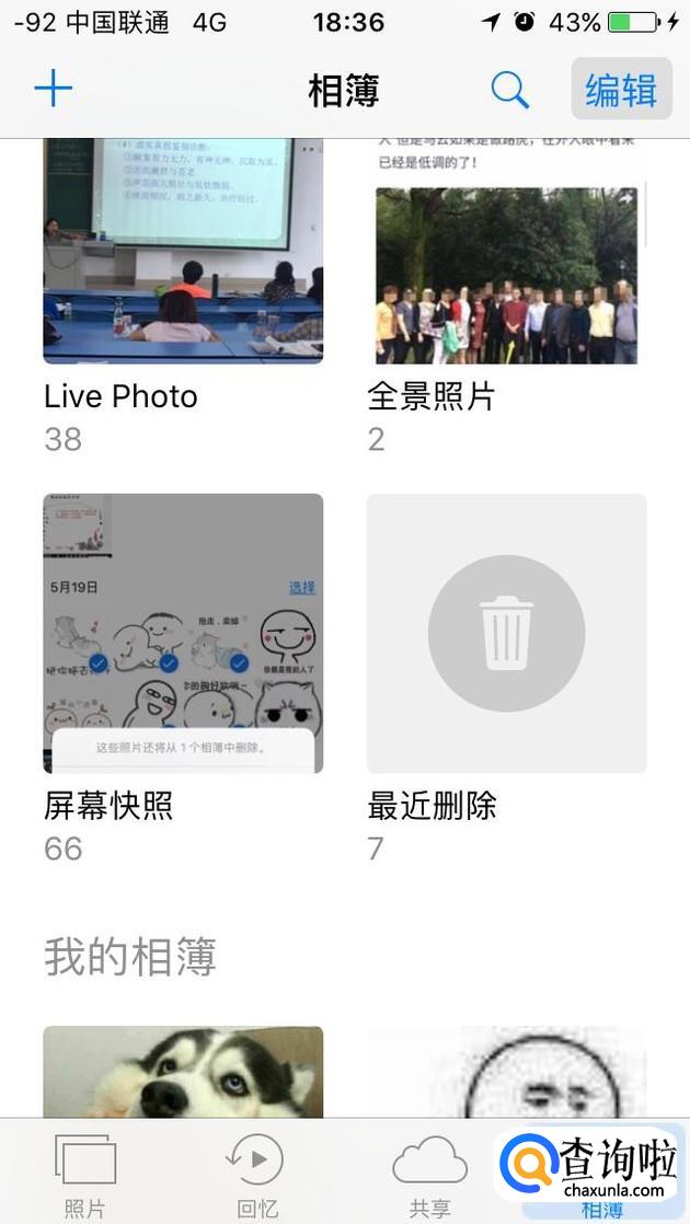 点击进入该相薄,然后我们点击左下角的全部删除,确定删除后就能彻底删除照片了。