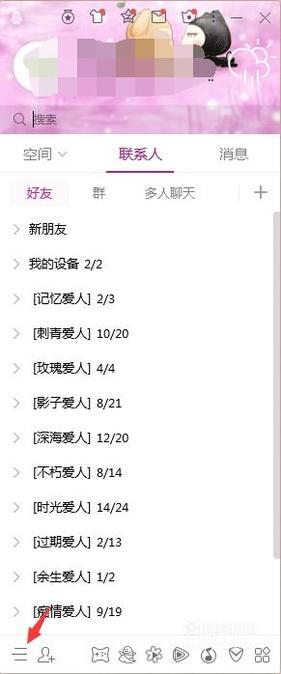 首先我们登录qq后,在主面板里点击下方的三横图标。