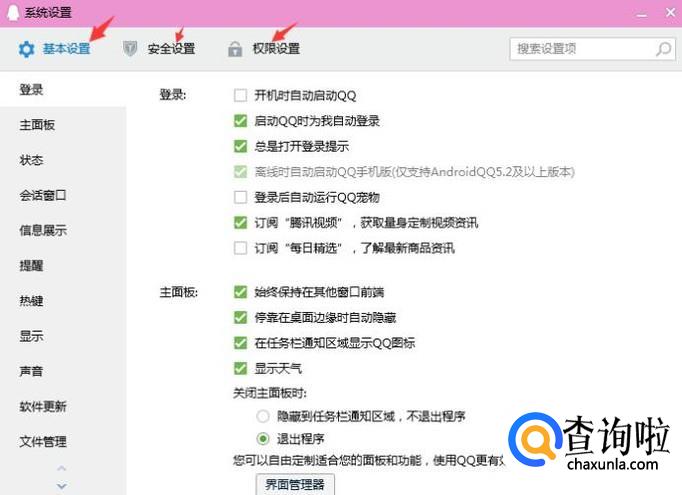进入到设置首先看到的是基本设置,我们可以根据自身需求去选择旁边的安全设置和权限设置。