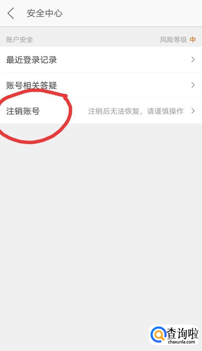 进入安全中心后,你会看到如下页面,然后点击“注销账号”。