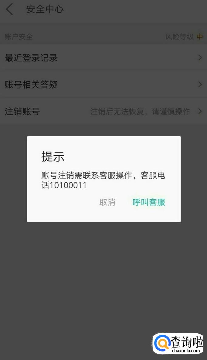 点击“注销账号”后,你将会看到以下界面,然后点击“呼叫客服”即可进行注销账号的处理。