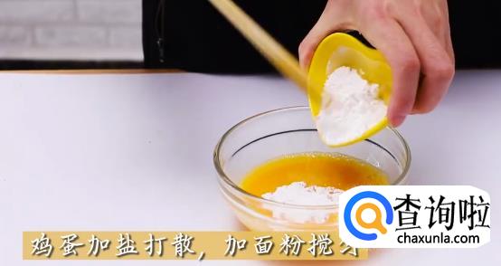 鸡蛋加盐打散,准备热油锅底,将蛋液均匀地铺在锅底,小火煎成饼状。然后将做好的饭团放上去。