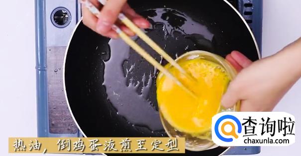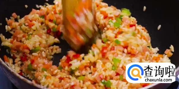 倒入米饭下锅翻炒,米饭一定要是干饭,最好能够硬一点。