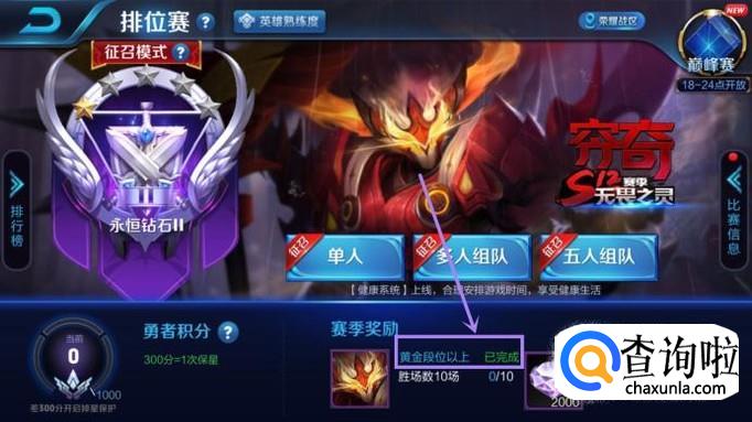 当你的段位达到黄金段位以上,这是典韦获得穷奇皮肤的必要条件之一。