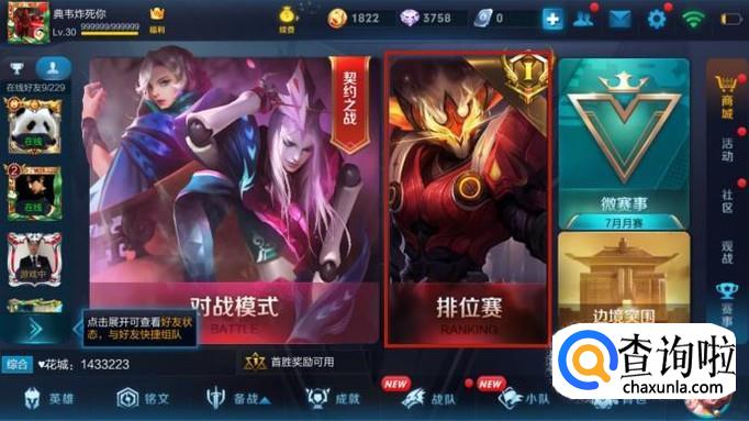 然后点击屏幕中的排位赛,如下图所示。