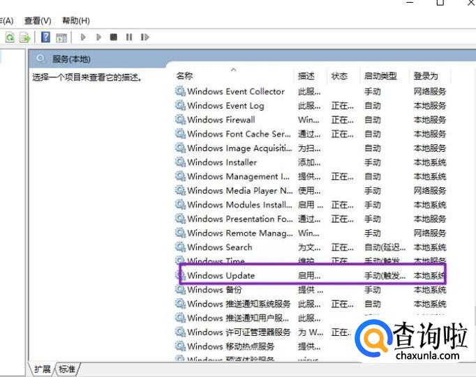 弹出的界面,我们找到Windows Update,双击进行打开;