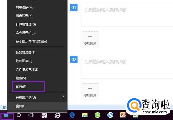 首先,我们右击电脑桌面上面的微软按钮,弹出的界面,点击运行;