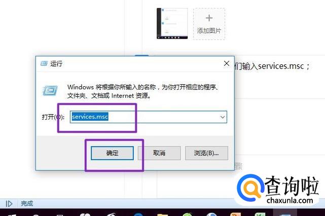 在弹出的界面中,我们输入services.msc,并点击确定;