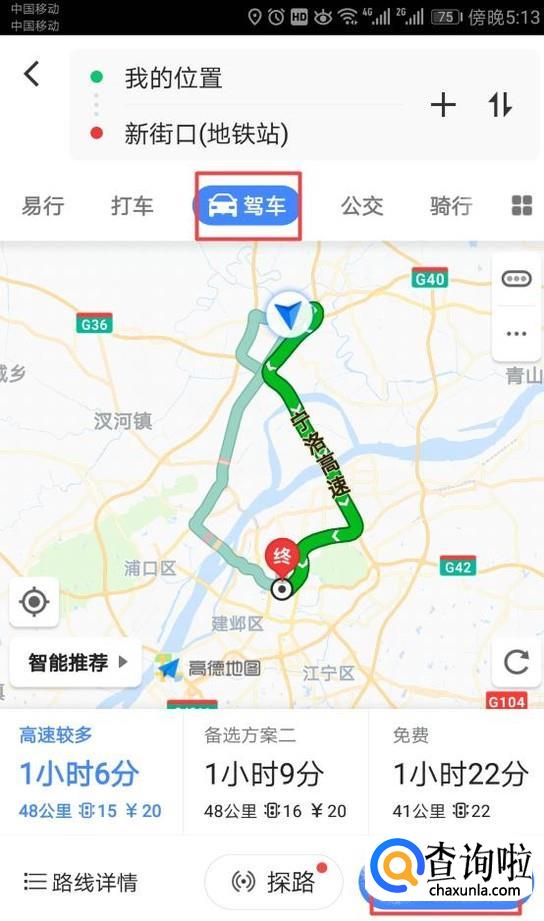 弹出的界面,我们选择驾车,然后我们点击开始导航就进入导航了。