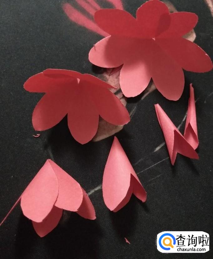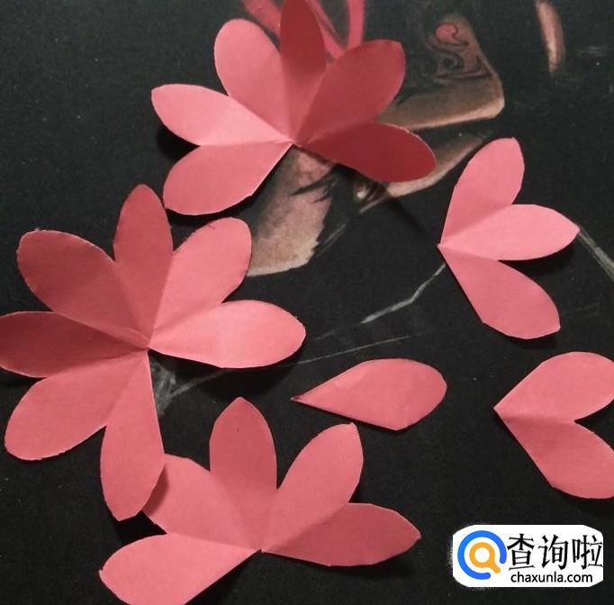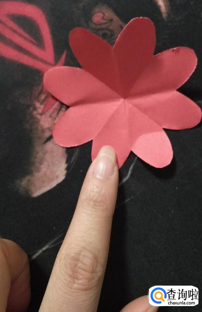 然后将其展开如下图所示,形成八片花瓣的花,然后按相同的做法再做两个。