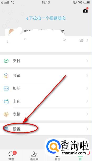 登陆微信之后,点击“我”选项卡。