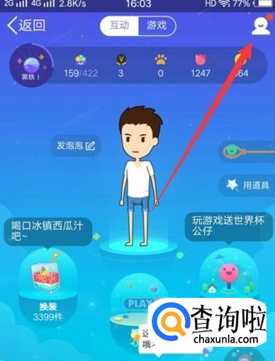 进入下一界面,点击自己的qq厘米秀形象小人物,如图所示。