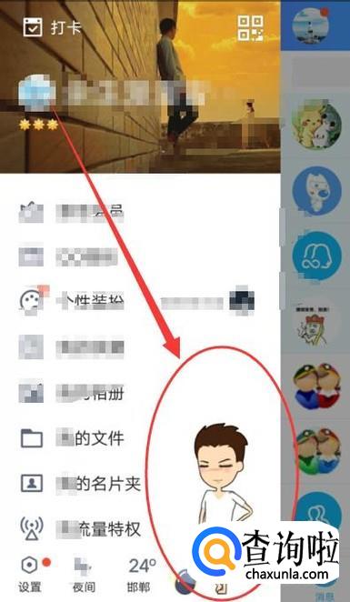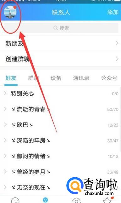 打开手机QQ,点击自己的头像位置,如图所示。
