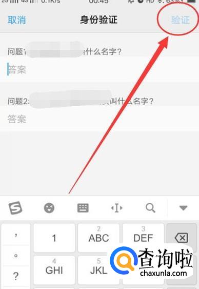 进入之后,回答验证问题,然后点击右上角的“验证”。