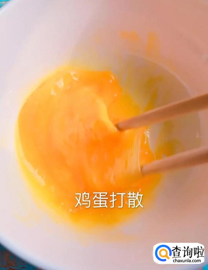 然后在一个碗中打入一颗鸡蛋搅拌均匀,如下图所示。
