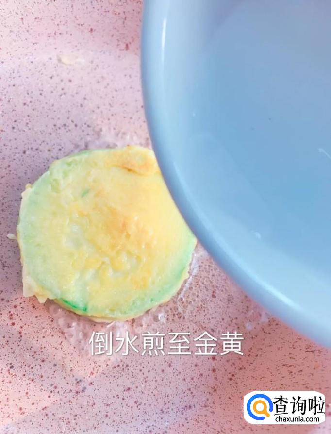 接着把西葫芦放入锅中,倒入适量的清水煎至两面金黄就可以了。