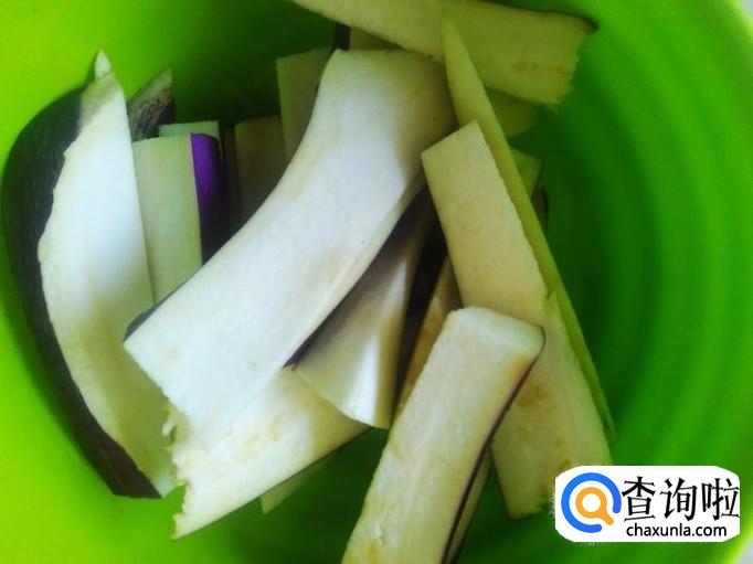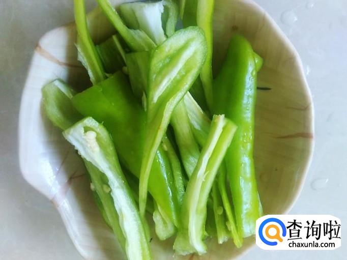 首先把茄瓜和青椒清洗干净,然后把茄瓜竖切成粗条,青椒切成粗丝。