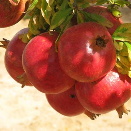 果石榴一般在每年的9~10月成熟。石榴花谢后结果,果实成熟后变成大型而多室、多子的浆果,每室内有多数子粒,外种皮肉质,呈鲜红、淡红或白色,多汁,甜而带酸,即为可食用的部分,内种皮为角质,也有退化变软的。
