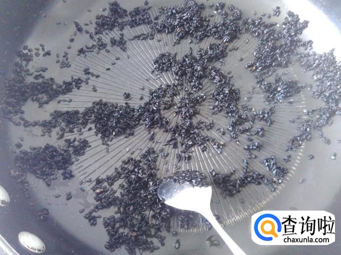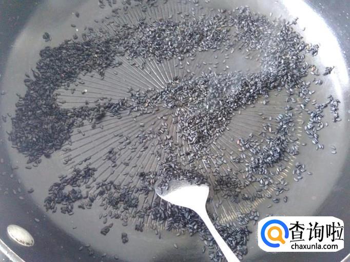 芝麻洗干净放进锅里用小火翻炒至香。