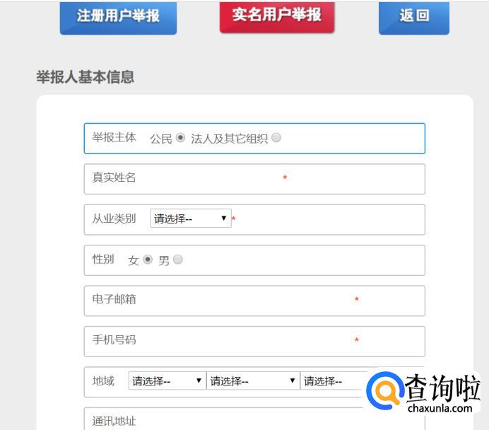 进入界面后,认真填写自己的基本相关信息和举报内容。